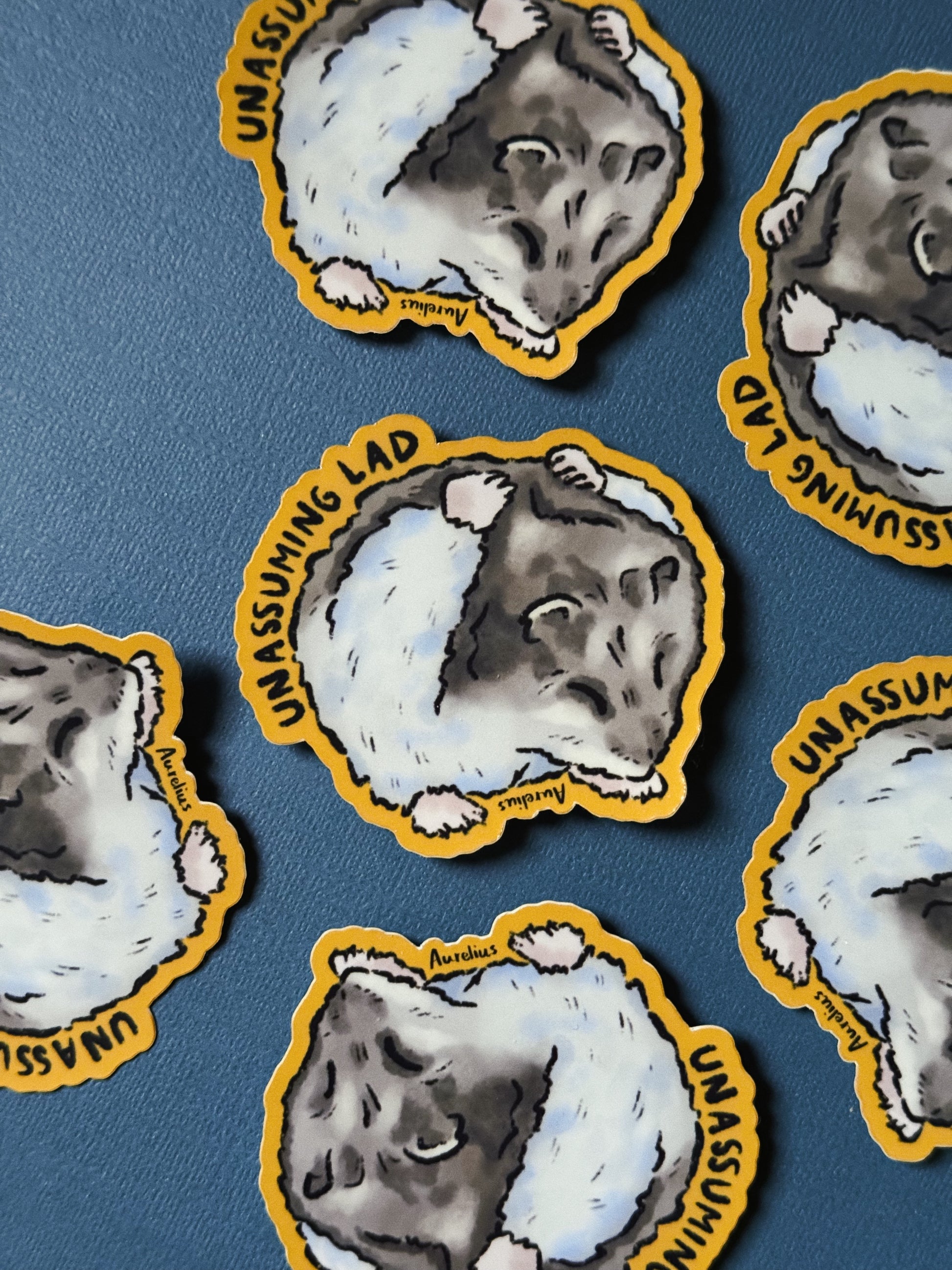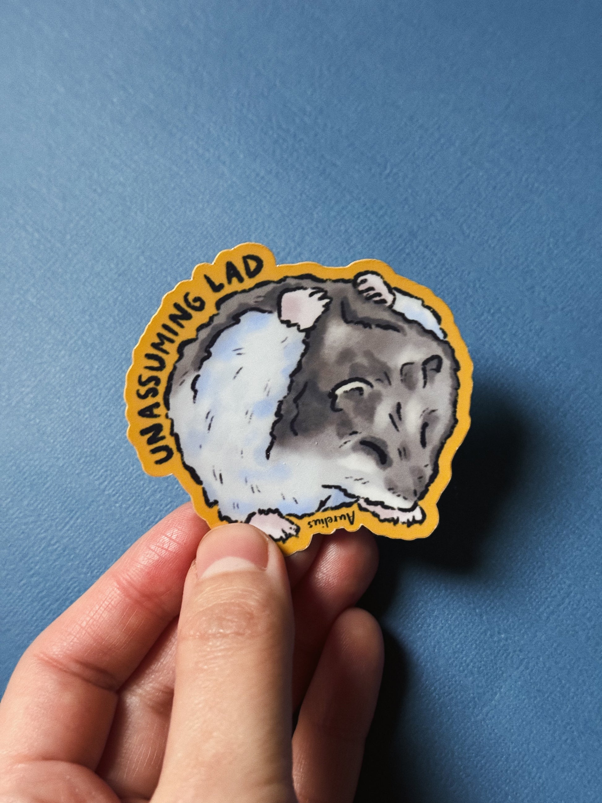 Un autocollant inspiré d’Aurelius, ce garçon tranquille qui ne demande rien à personne, sauf un moment pour lui. Unassuming Lad capture cette scène intime où il se consacre à son rituel de self‑care. Un toilettage appliqué, des gestes précis et une concentration presque méditative. Il symbolise la modestie et la délicatesse d’un hamster qui se bichonne en toute humilité.